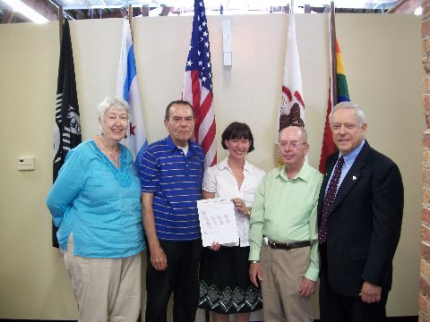 From Left to Right: Frances O’Kennard. Ernie Kramer, Rep. Steans, John Keating & Mike Spellman